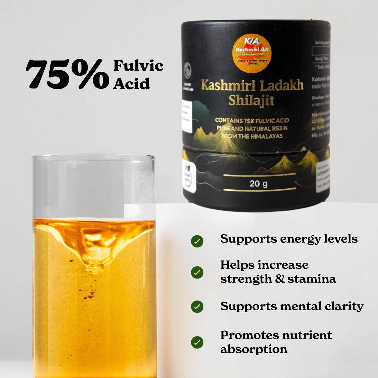 This is the key bioactive compound in shilajit. Higher levels of fulvic acid are desirable for its effectiveness